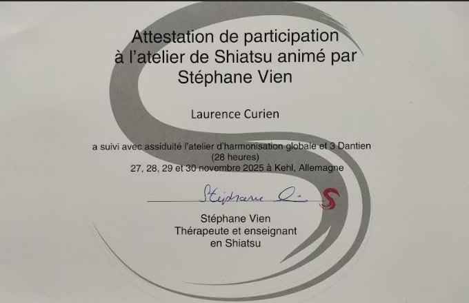 Mai 2024 : Diplômée spécialiste en Shiatsu